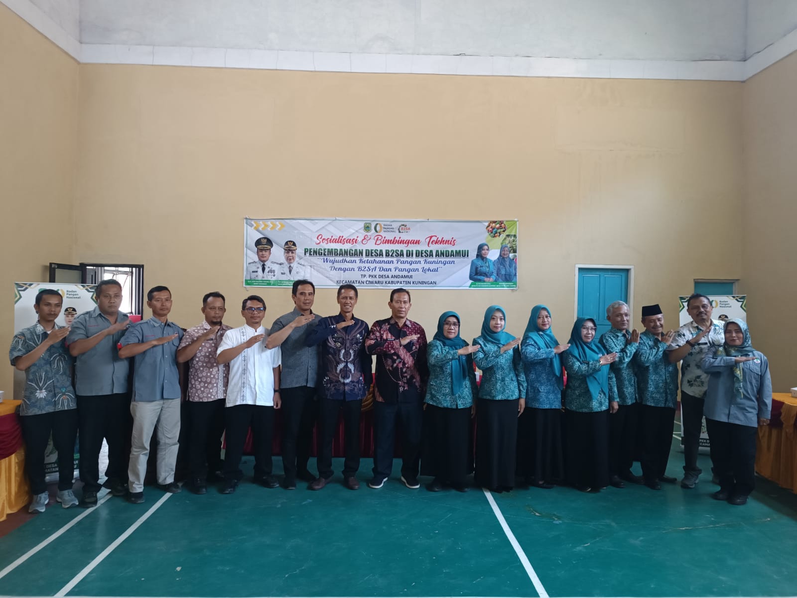 Desa Andamui menyelenggarakan Kegiatan Sosialisasi dan Bimbingan Teknis Pengembangan Desa B2SA yang bertempat di Aula Balai Desa Andamui (Jumat, 12 Desember 2025). Kegiatan ini diikuti oleh Kepala Desa Andamui, Ketua TP.PKK, Kader PKK, Kader Posyandu, Kader Posrem, Ibu RT/RW, Perangkat Desa, BPD, LPM, serta unsur pendukung lainnya yang berperan dalam ruang lingkup pemerintahan desa. Kegiatan ini dihadiri oleh Kepala Dinas Ketahanan Pangan dan Petanian Kab. Kuningan, Ketua TP. PKK Kabupaten Kuningan, Ketua TP. PKK Kecamatan Ciwaru dan Kabid PKKP selaku pemateri sosialisasi.